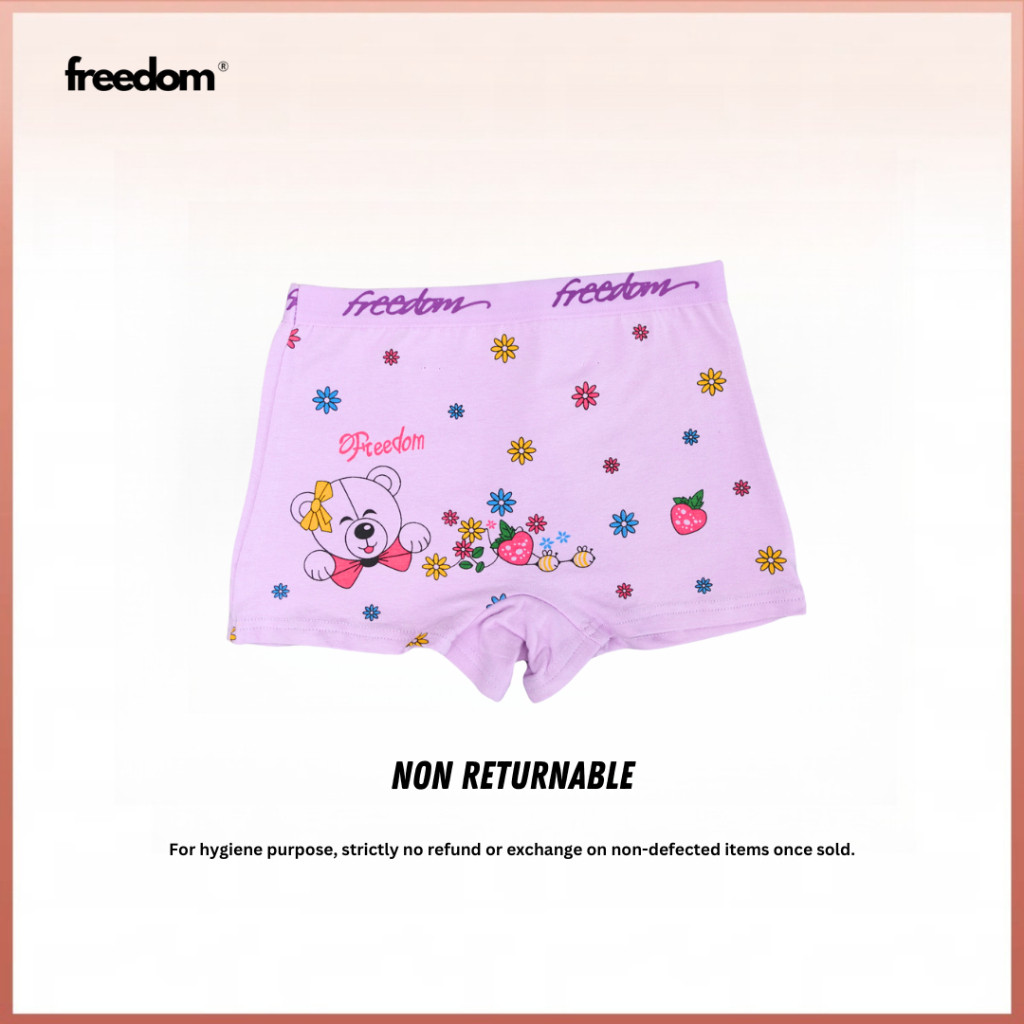 ┅┅┅┅┅ WELCOME TO FREEDOM MALAYSIA ┅┅┅┅┅ ☑ Ready Stock in our KL warehouse ☑ Premium quality & best value for money ☑ Freedom since 1981s FREEDOM set on the use of exclusive fabrics, high quality production, state-of-the-art finishing and advancements in design and fit. ------------┅ PRODUCT DETAILS ---------------┅ Freedom Girld Cotton Spandex Trunk (3 Pcs) Model : FD1111-3 Material : 95% Cotton, 5% Spandex. Elasticity (Non Elastic / Normal / High Elastic): High Elastic Thickness (Thin / Normal / Thick): Normal Cloth Type (Fit / Normal / Loose): Normal Suitable age: 2 Years Old – 12 Years Old Type : Trunk Pattern: Printed logo Style : Daily Comfort Color: Multiple Color [random color will be sent] Size : S/M/L/XL ---------------------------------------Size Chart------------------------------------ Size----------------Waist--------------------Height------------------------Weight S----------------46~51CM------------90~120CM---------------13~17KG M-----------------52~56CM------------110~130CM---------------17~23KG L---------------56~60CM------------120~140CM----------------23~29KG XL-----------60~64CM------------150~160CM---------------29~38KG SIZE GUIDE, kindly follow the measurement, others just a guidance. If not sure about the size, will advice take the bigger size as all innerwear due to hygienic reason, is not refundable nor returnable. Thanks. **NOTE** – Please allow 1-2cm differences in measurements – Delivery usually takes around 3-7 working days after item has been shipped out FEEDBACK: 1. If you are satisfied, please give us 5 stars praise. 2. Please contact us before you are going to give us bad review. We are helpful and will solve the problems. 3. If you receive a defect item, please contact us at once with item picture or video. WARRANTY & RETURN POLICIES: 1. No Warranty. 2. If you get factory faulty/broken item or we send wrong size/color/item, please contact us within 3 days start counting on the date you received, and do not complete the order, we will not taking any responsibility after 3 days passed or the order has been completed. 3. Return & refund are not acceptable if customers order the wrong size/color/item. #freedom #cotton #kids #trunk #boxer